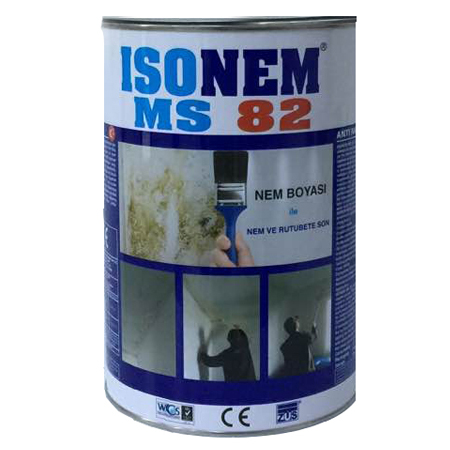 ISONEM MS 82 este o vopsea de izolare foarte puternică, care este fabricată prin modificarea cu produse chimice speciale şi polimeri în scopul eliminării problemelor cauzate de umiditate şi igrasie pe pereții interiori si exteriori ai clădirilor care decurg din condiţiile naturale. Produsul poate fi aplicat pe toate tipurile de pereti umezi sau uscati, si suprafete vopsite si nevopsite. Datorită rezistenţei sale perfecte împotriva substanțelor alcaline, aceasta garantează prevenirea umezelii pe pereți. Rezistenţa de aderenţă pe toate suprafeţele este extrem de puternică. Produsul prezintă o rezistență ridicată împotriva substanțelor chimice. Nu este afectată de radiaţii UV, ploaie, apă sau săruri. Este aplicabilă pe pereții interiori si exteriori ai clădirilor, fundațiilor, subsolurilor, garajelor si beciurilor, pereților interiori orientați spre nord, si multe alte zone expuse la umiditate si igrasie ce se formează în straturi de pelicule rezistente la apă pe suprafețele pe care se aplică. Ea aderă foarte puternic pe suprafeţe, chiar dacă vopseaua sau peretele este umed, se usucă foarte repede şi asigură izolare perfectă. Nu este afectată de apa sărată. Datorită acestei caracteristici, este, de asemenea, utilizat în eliminarea veziculelor de la bazele clădirii. În timp ce ISONEM MS 82 oferă un strat impermeabil pe suprafeţele pe care se aplică, de asemenea, pătrunde în pereţi şi usucă până si umiditatea din interiorul pereților cu chimicale speciale din ingredientele sale. In acest fel, se asigură uscarea în interiorul peretelui. ISONEM MS 82 nu cauzează efecte secundare. Prin urmare, nu prejudiciază suprafaţa sau materialele pe care se aplică.